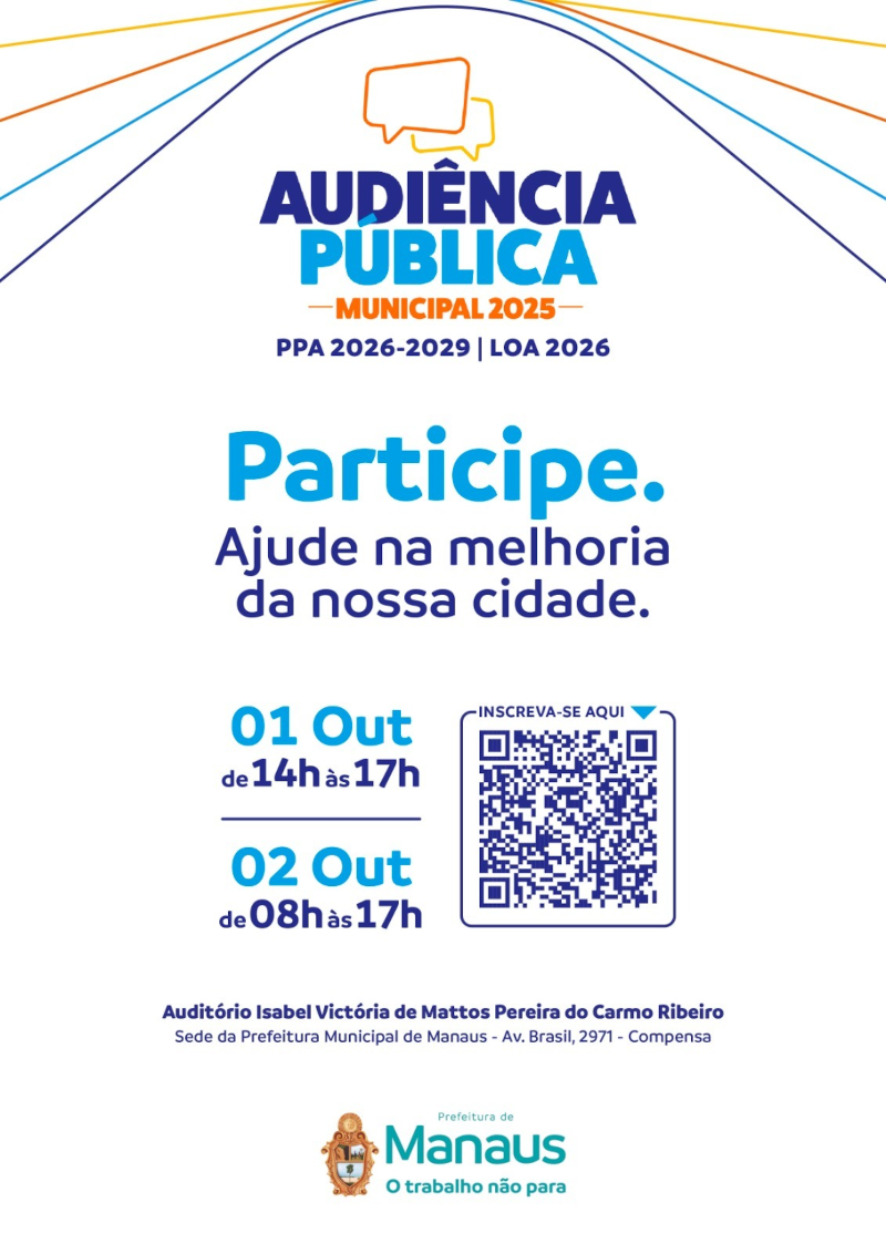 A Prefeitura encaminhará a proposta do PPA à Câmara Municipal até 15 de outubro.